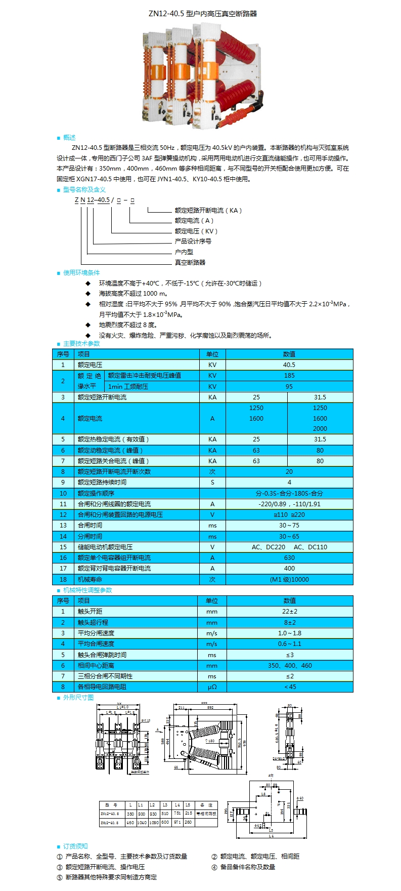 | ZN12-40.5型戶內高壓真空斷路器 | |